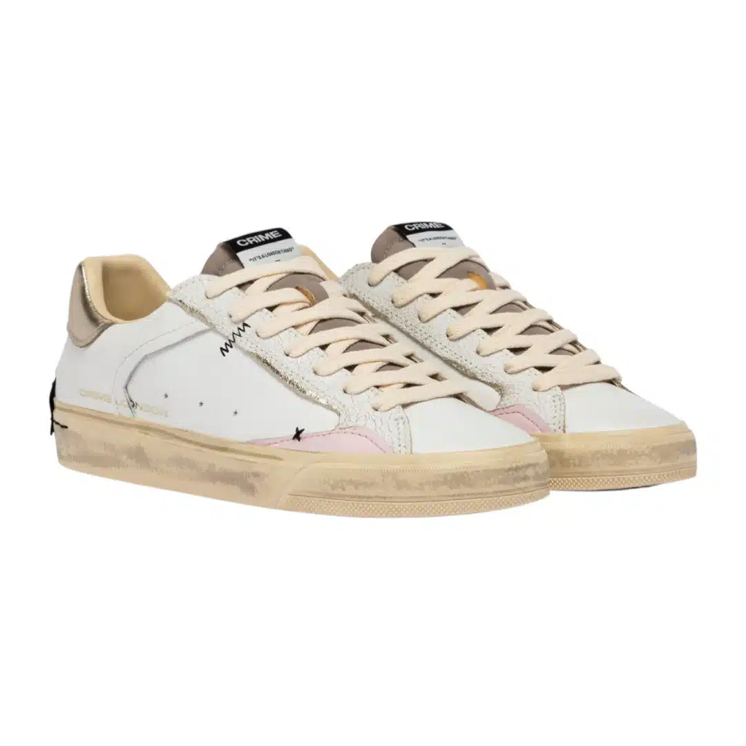 • Tomaia in pelle bianca, dettagli in pelle rosa pastello