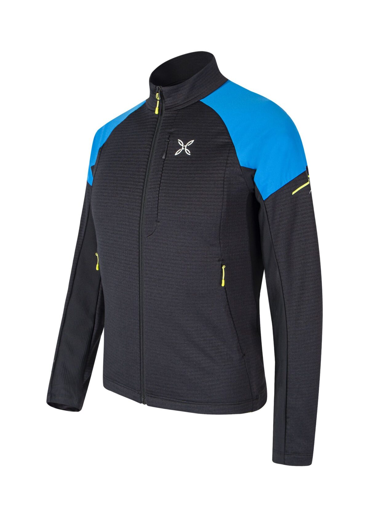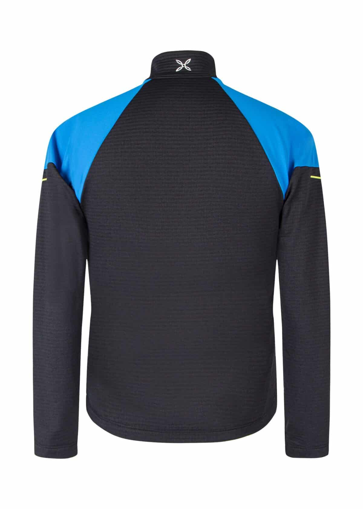 • Tessuto pile poliestere 4-way stretch con garzatura sul rovescio a “grid”, elevata protezione dai raggi UV