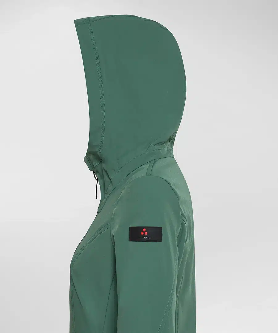 Giacca corta con ampio cappuccio realizzata in tela di nylon stretch accoppiata ad un jersey di nylon soffice che dona al capo comfort e calore. Chiusura centrale con zip pressofusa, doppio cursore, in contrasto colore nero. Ampio collo a cratere con cappuccio fisso e tasche laterali con zip invisibile.. Un capo pulito e minimale che esalta ogni look con gusto e femminilità.