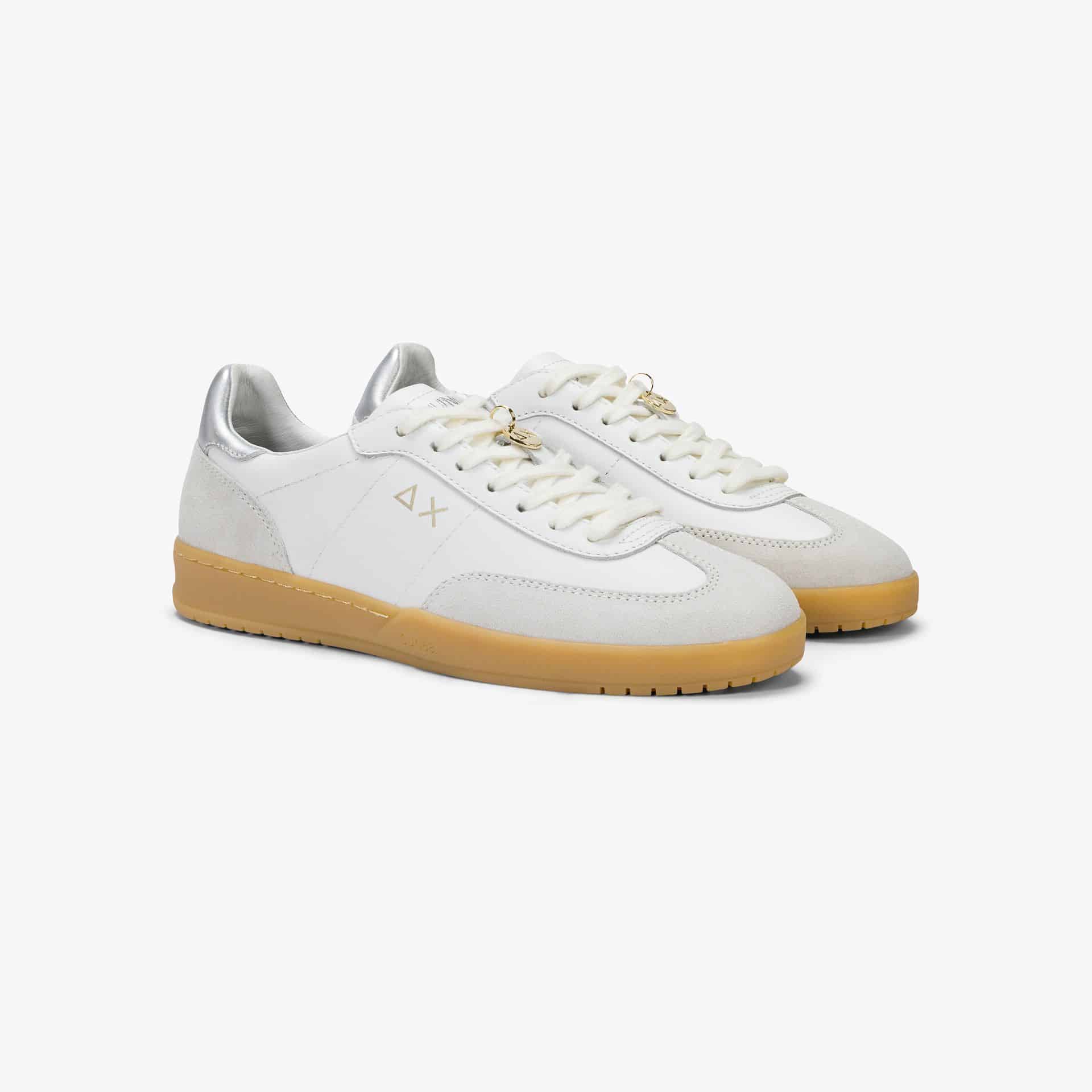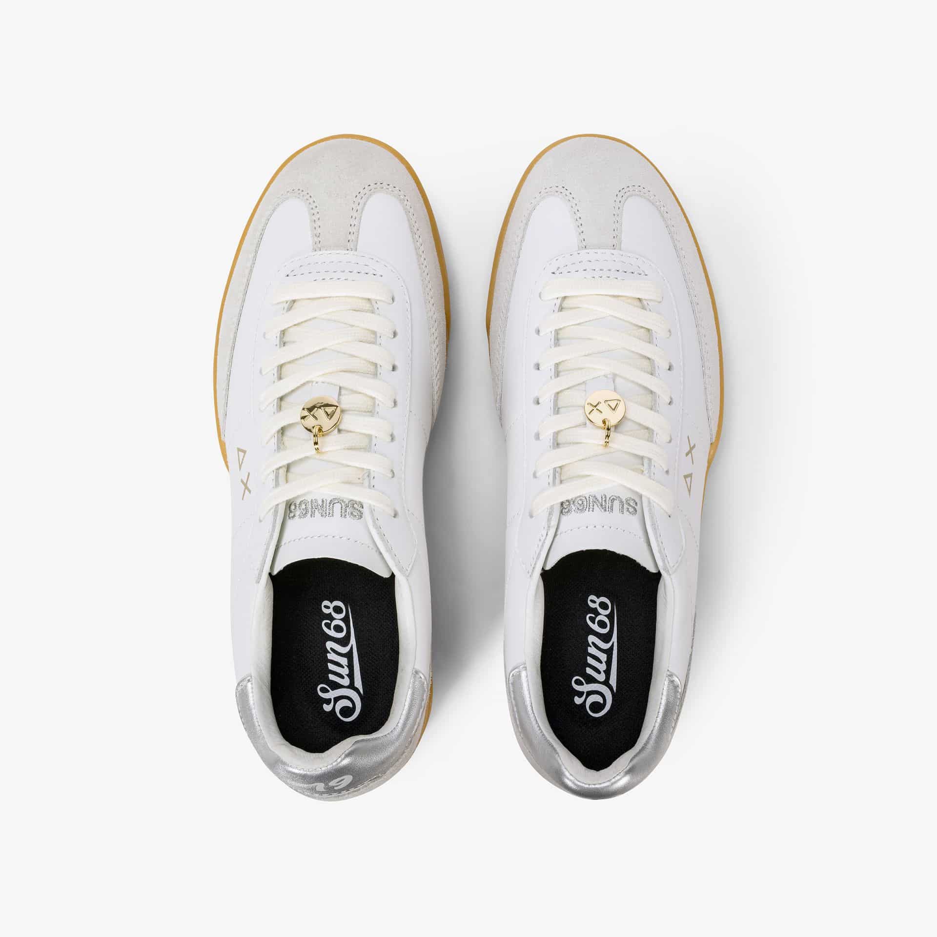 Ispirata alla classica scarpa da bowling, la sneaker California Sun reinventa lo stile vintage con un tocco moderno. La suola in gomma dalla tonalità naturale aggiunge un accento iconico, mentre la tomaia in pelle crea una sensazione tattile pregiata. Indossala con i pantaloni e la maglieria d’ispirazione rétro della nuova collezione per un outfit coordinato dal fascino old school.
