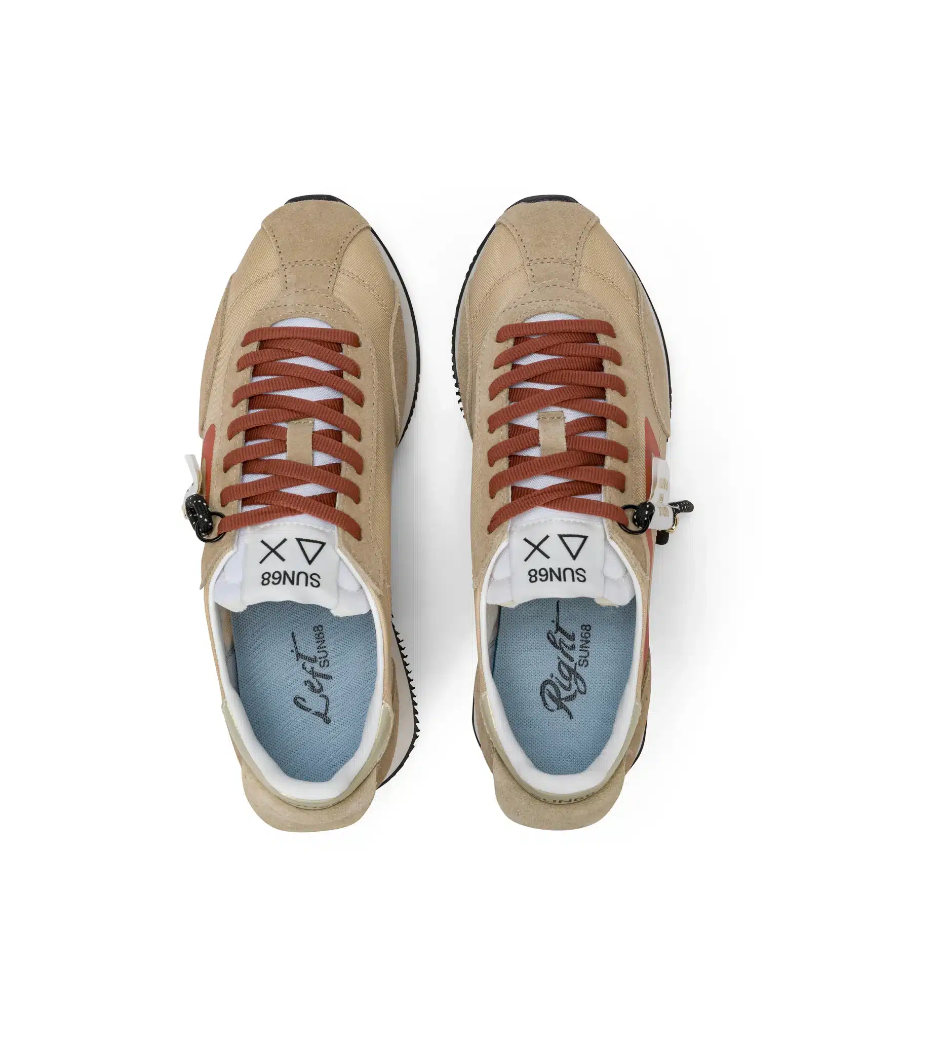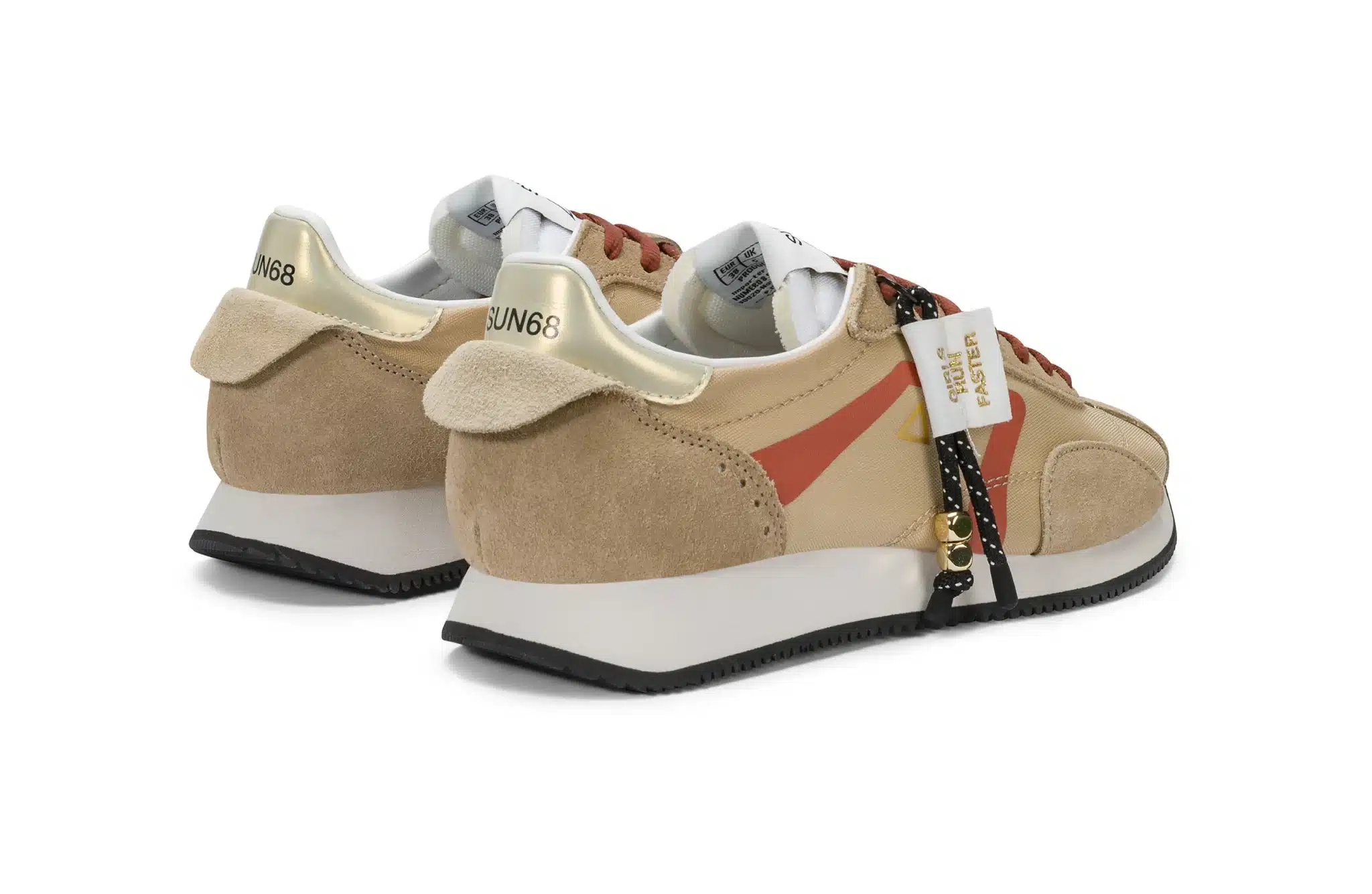Un modello dal design iconico, intriso dell’attitudine contemporanea SUN68: la sneaker Easy Runner incarna le tendenze del mondo casual e le eleva in maniera autentica. Impreziosita da un cordino annodato ai lacci con l’esclusiva label “GIRLS RUN FASTER”, si abbina perfettamente anche ai pantaloni chino per un twist ricercato dal fascino urban.